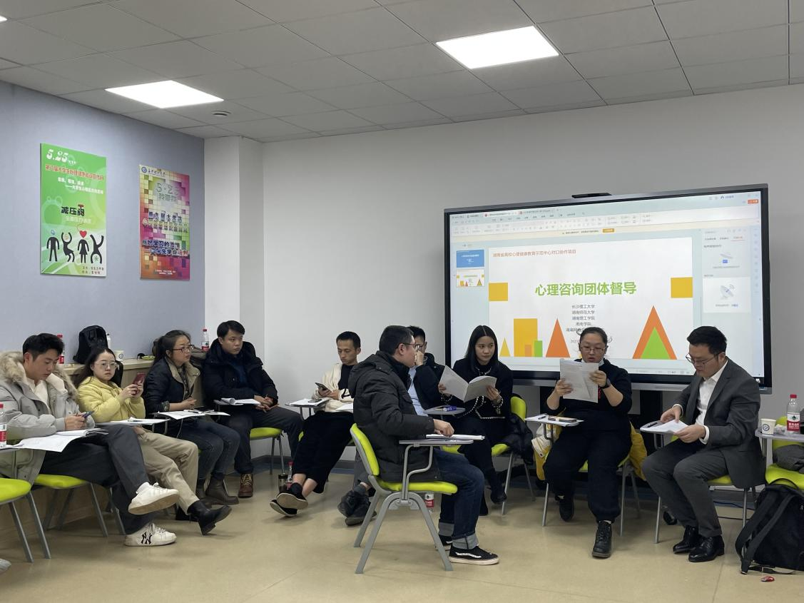2023年12月28日,MG冰球突破官网心理中心作为湖南省高校心理健康教育示范中心,联合三所对口协作学校,于MG冰球官网心理健康教育中心云塘校区团体辅导室进行第十九期团体专家督导。本次督导邀请到湖北东方明见心理健康研究所研发中心主任,临床与咨询心理学博士闫玉朋(X-20-103)。本次督导由MG冰球官网心理中心主任易敏主持,MG冰球突破官网、湖南师范大学、湖南理工学院和湖南网络工程职业学院四校专兼职咨询师共38人参与学习。