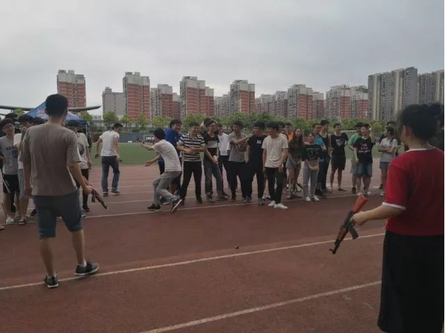 参赛者分为两组,各组之间抢答,输者接受AK水枪惩罚。仅第一题,几乎是全员抢答,反映出参与人员的热情非常高涨。