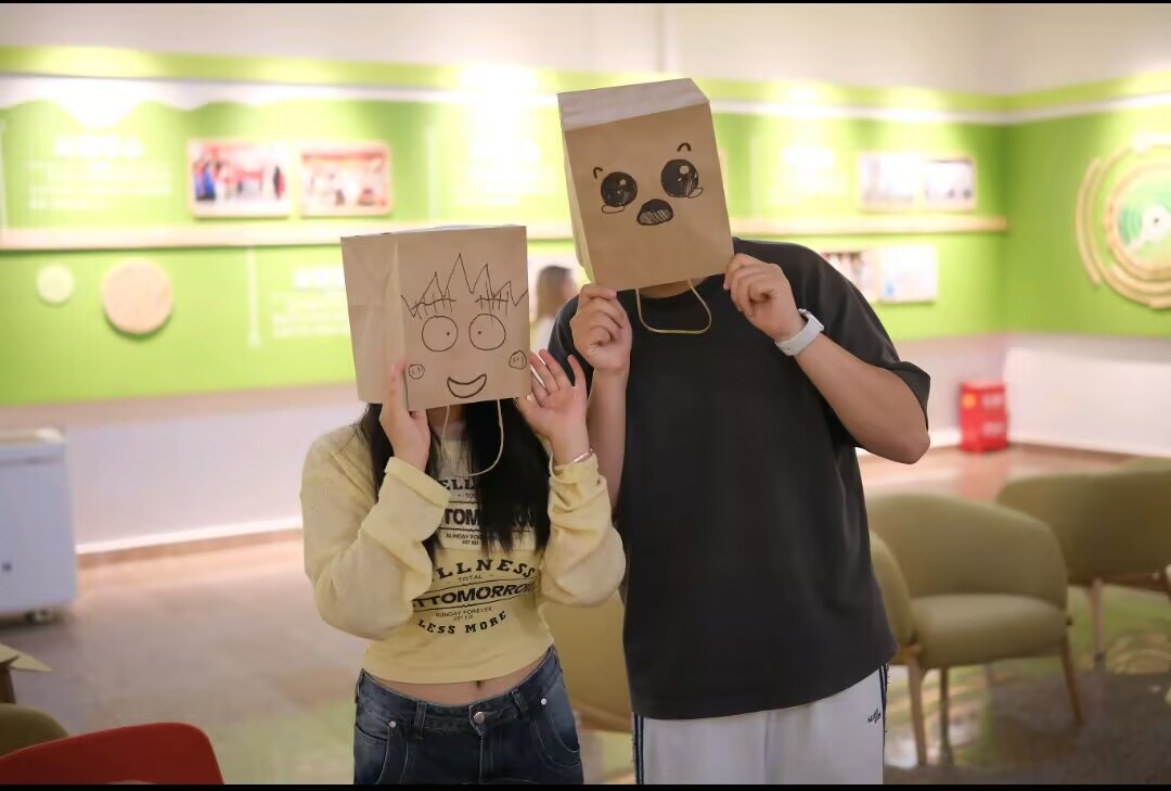 在故事接龙绘画摊位,参与者通过绘画和叙述的方式共同完成一幅画作和一个故事。此活动不仅激发了参与者的创造力和想象力,还通过创作过程帮助同学们放松身心、缓解压力。记忆王者情绪版考验参与者短时间内的反应能力和对各种情绪的识别能力,通过画面来呈现不同情绪的特点,能够帮助同学们提高对各种情绪的敏感度,准确识别自己和他人的情绪。信任盲行摊位设置了两人一组的信任游戏,一人蒙眼用筷子夹取乒乓球,另一人用语言引导其绕过障碍物到达终点,角色互换后再次重复。同学们分享了自己在不同角色中的感受,并探讨了如何更好地建立信任。梦想拼贴银行摊位提供了杂志、报纸、彩纸及贴纸等材料,参与者通过这些材料来搭建自己的梦想世界,制作梦想拼贴画。此活动激发了同学们的动手能力和创意,通过资源共享促进成长与交流。
