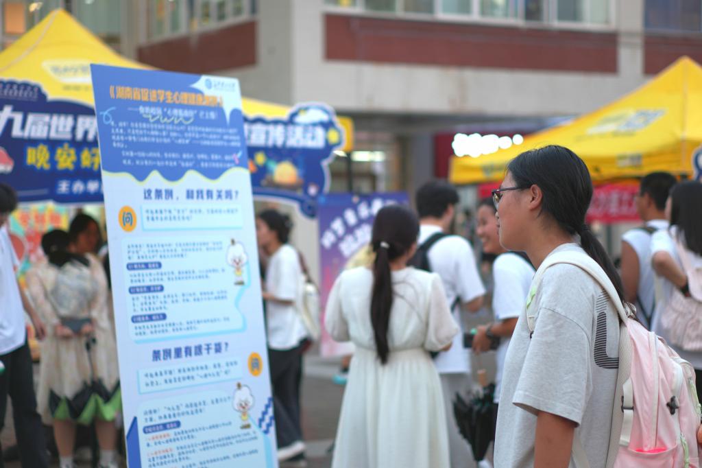 为提升全校学生对精神卫生知识的了解与重视,增强心理健康素养,促进健全人格发展,有效预防和应对心理问题,营造阳光积极的校园氛围,MG冰球突破官网学生工作部心理健康教育中心于10月10日举办了第九届世界精神卫生日主题宣传开幕活动——“晚安好梦,活力青春”广场游园会。活动在云塘与金盆岭两校区同步开展,吸引了约900人次学生积极参与。游园会融合科普性、趣味性和生活化互动于一体,让学生在轻松愉快的氛围中掌握睡眠与心理健康知识。