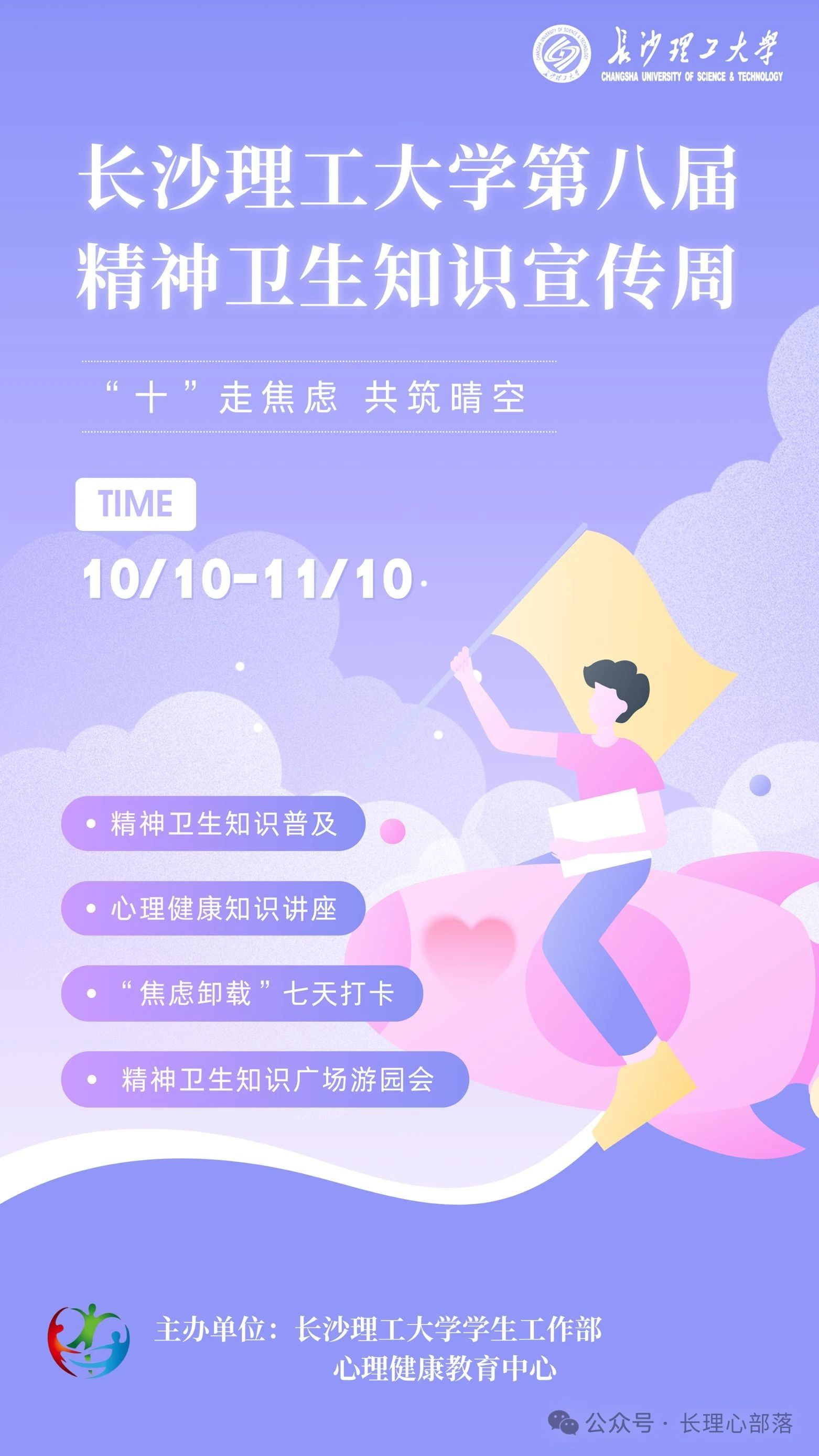 今年的10月10日是第33个世界精神卫生日。为帮助同学们缓解焦虑,守护心理健康,了解和预防可能出现的心理疾病,校朋辈心理互助部组织开展了第八届精神卫生知识宣传周相关活动,以“‘十’走焦虑,共筑晴空”为主题开展了3项校级活动。