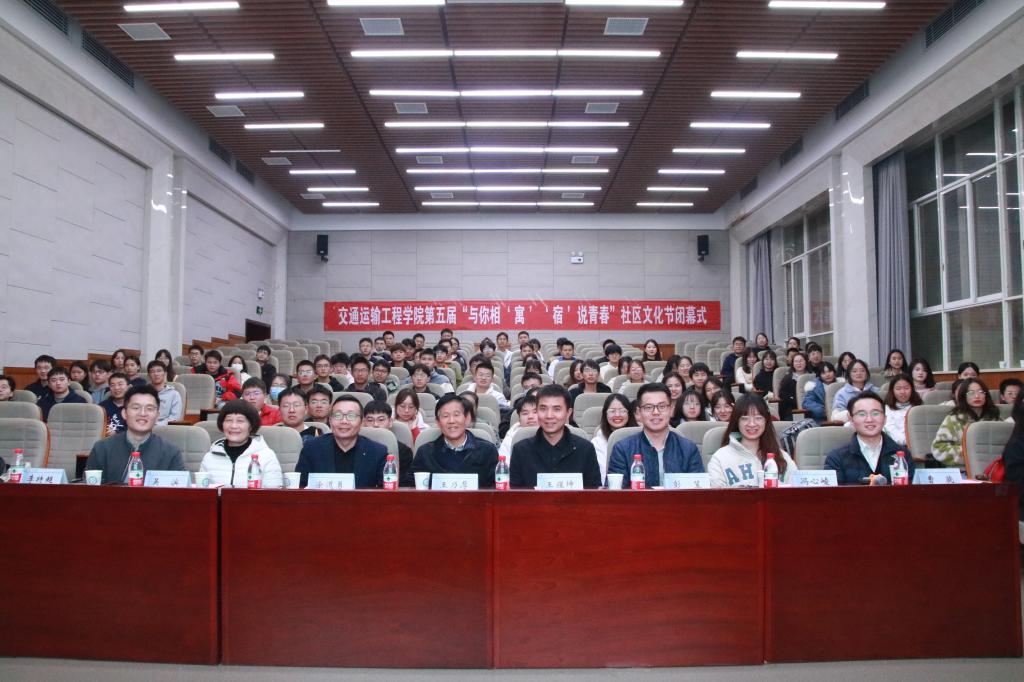 一封封纸短情长的书信,一段段精心制作的视频话剧,一张张搞笑幽默的表情包......近期,交通学院的同学们在社区文化节活动中“宿”说青春,分享着宿舍生活的点点滴滴,再现一个又一个奇思妙想。为进一步推动学生社区精神文明建设,深化寝室文化生活内涵,营造健康、活泼、文明、安全、幸福的社区氛围,交通学院于12月9日晚在云塘校区工科二号楼交通科技报告厅举办第五届“与你相‘寓’ ‘宿’说青春”社区文化节闭幕式活动。校关工委常务副主任王乃厚、学工部副部长王煜坤、交通学院党委副书记涂道勇、党建特邀组织员吴滨及学工办全体辅导员出席活动,交通学院第十五届团委学生会主要成员、参赛选手、各班生活委员等近两百人参加活动。