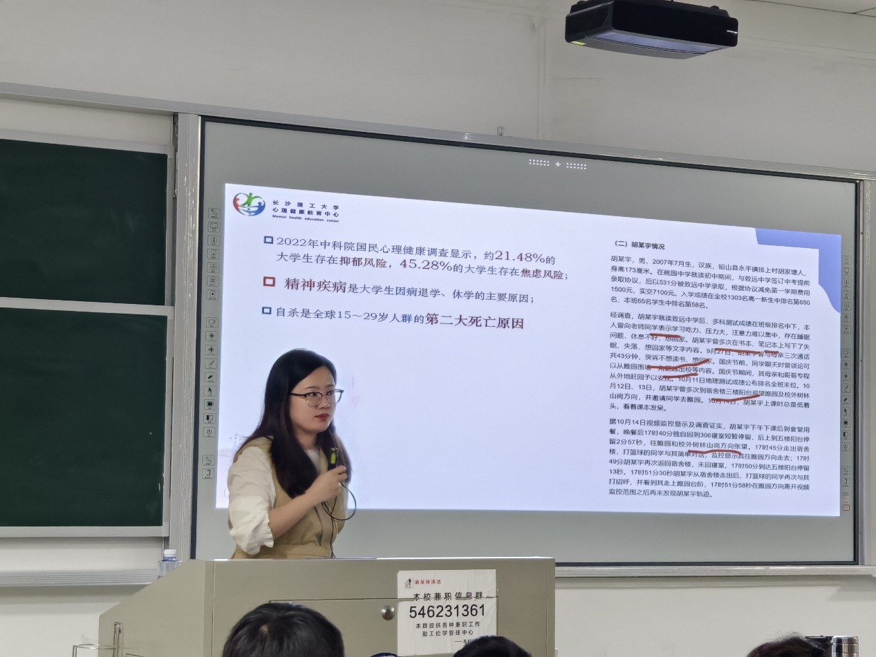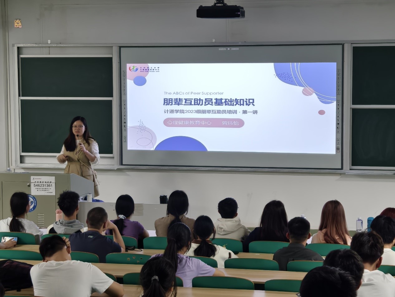 为提高朋辈心理互助能力,加强学生心理素质,培养学生健全人格,4月17日晚,计通学院在金盆岭6-312教室举行了2023级朋辈心理互助员上岗培训班开班仪式,MG冰球突破官网心理健康教育中心曾玮怡担任第一讲面授教师,23级辅导员刘洋主持,23级全体心理委员、寝室长、学生骨干参加。