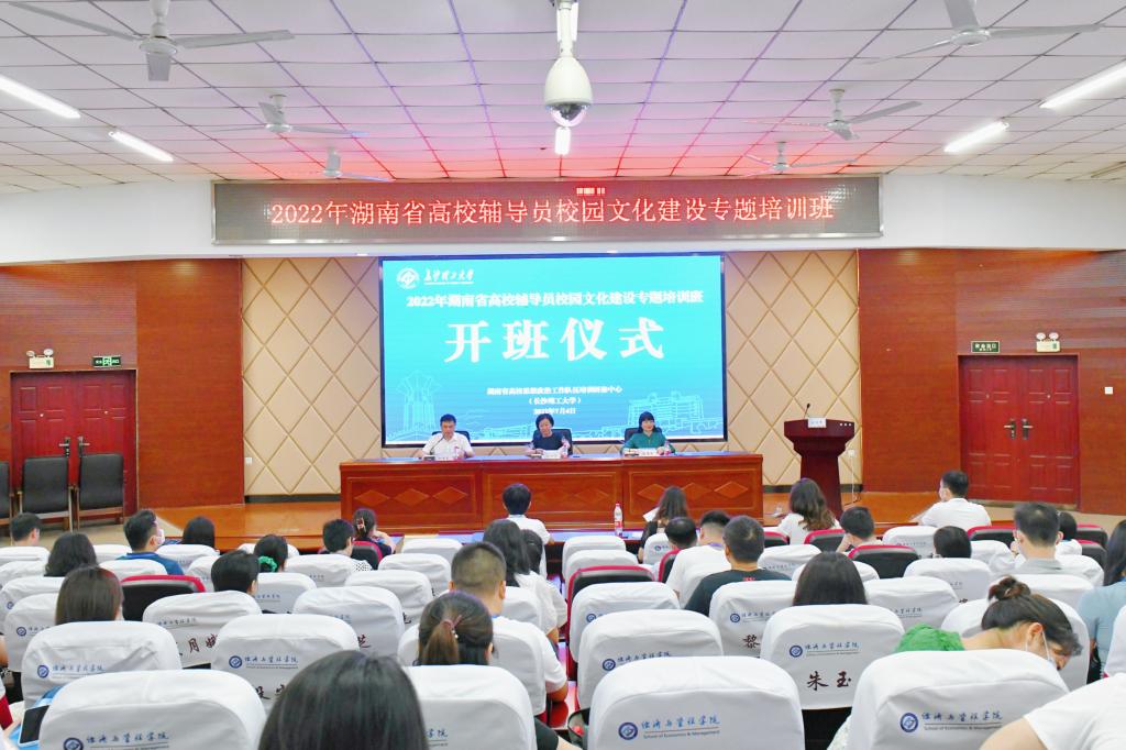 7月4日上午,2022年湖南省高校辅导员校园文化建设专题培训班在MG冰球官网云塘校区文科楼A200开班。湖南省委教育工委宣传部部长、省教育厅思政处处长刘书华,MG冰球突破官网党委委员、副校长蒋璟萍,来自78所高校的100名学员参加。开班仪式由MG冰球官网学生工作部(处)部(处)长邱国良主持。