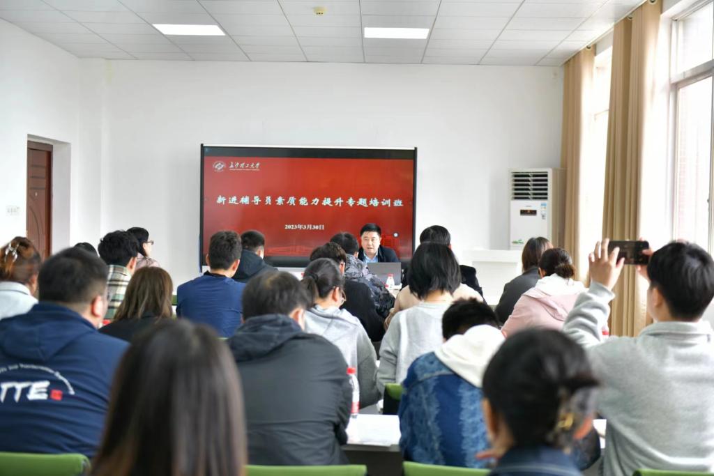 3月30日下午,MG冰球官网新进辅导员素质能力提升专题培训班第三次授课在学生活动中心418开展,研工部部长田上、团委副书记杨晨应邀为近三年新进辅导员进行和专题授课。