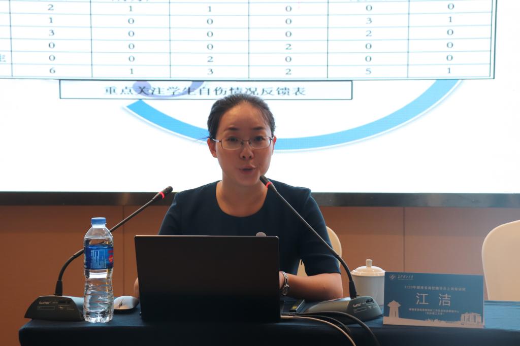 中南林业科技大学心理健康教育中心主任袁红梅教授以《从心开始 以心引领》为题,结合具体案例阐述了辅导员开展心理健康教育的优势及角色定位、工作途径、具体工作方法。