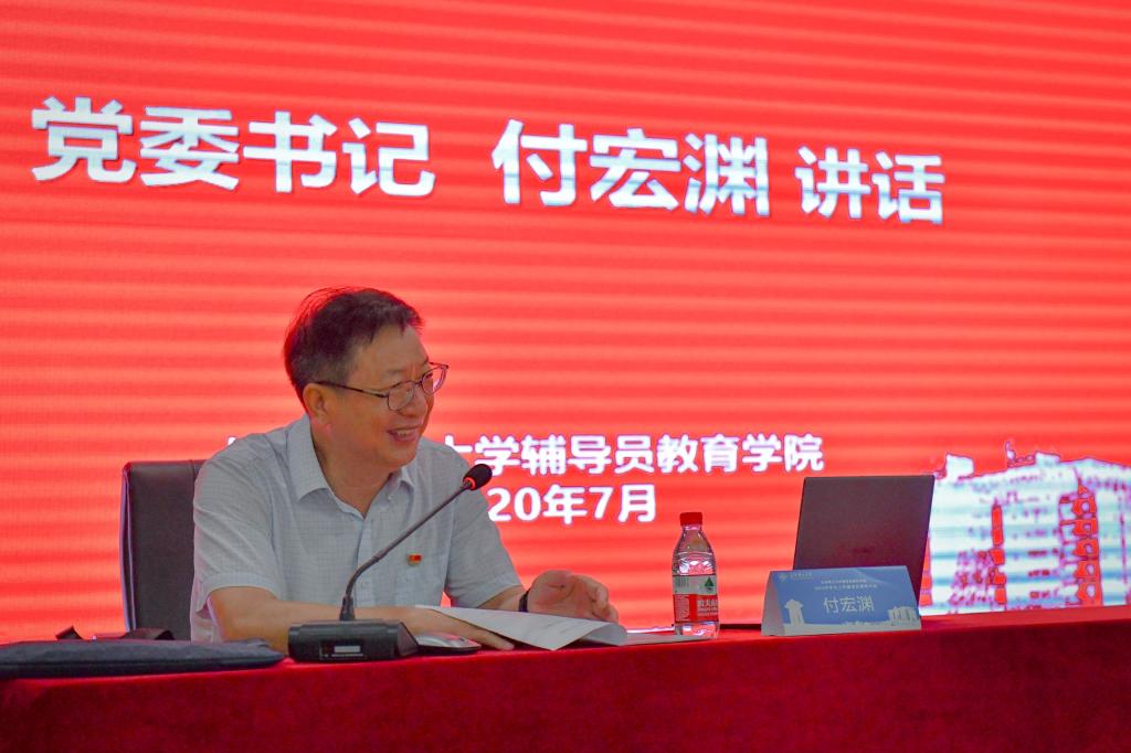 党委书记付宏渊在讲话中希望辅导员和学工干部从高等教育改革发展的宏观视野来分析思考教育的本质,深刻认识教育家与教育者的区别;要求辅导员一是要把学校办学理念、人才培养特质、教育情怀融入工作之中;二是要把学习作为永远不懈的追求、应有的品质、进步的途径,通过学习提升理论素养、提高道德品质、保持政治定力、加强自身修为;三是要加强对形势的研判;四是要坚持学以致用、学用结合,把长理特质文化融入教育管理之中。