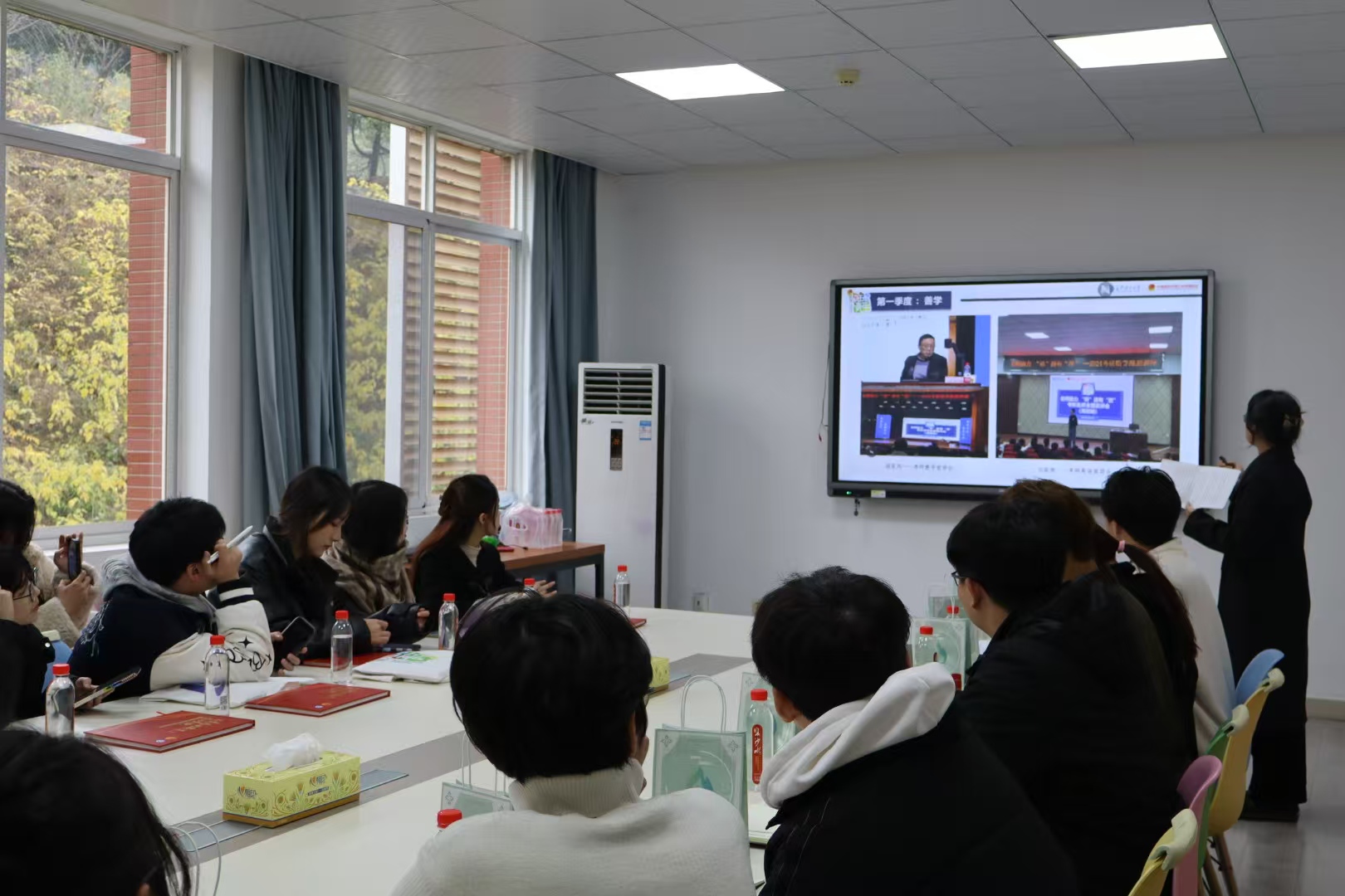 在经验分享环节,双方成员积极互动,针对学生会工作中遇到的困难和挑战、如何推动校院联系、打造品牌活动等问题展开了互动讨论,深入交流部门管理经验,现场气氛热烈。最后,MG冰球官网学生会轮值主席冯开、王珮瑶对本次交流座谈会进行了总结。座谈会结束后,全体与会人员共同参观了MG冰球官网“三全育人”实践教育基地,回顾了MG冰球突破官网的发展历程,感受了MG冰球官网独特的校园风貌和多元的文化魅力。