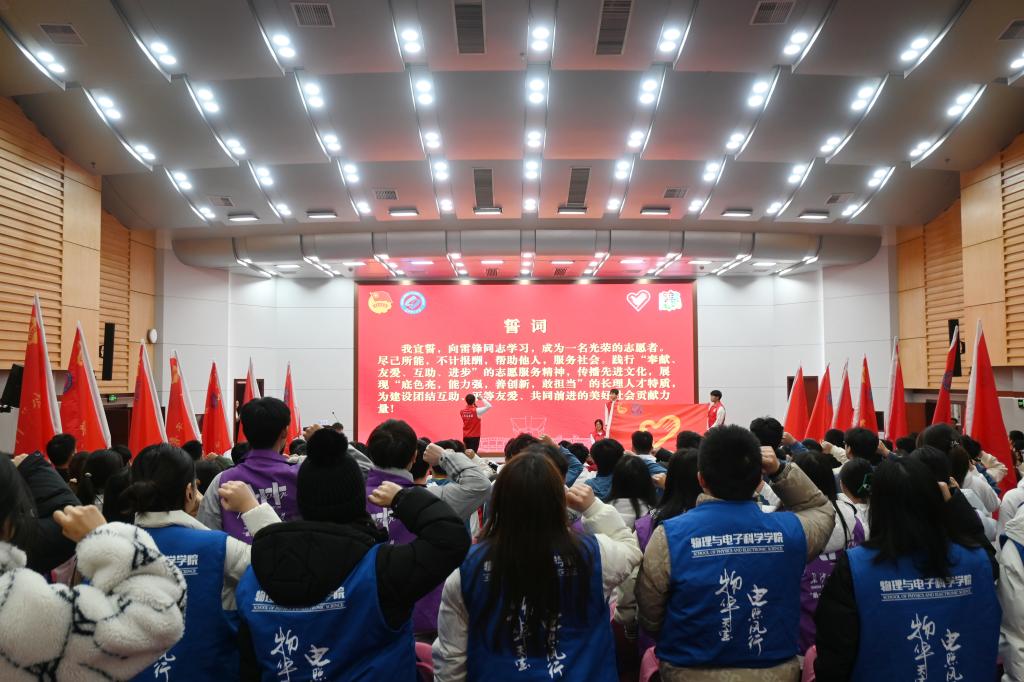 启动仪式上,学校学工部负责人宣读了《关于开展MG冰球突破官网2025年学雷锋志愿服务活动的通知》,鼓励青年学生学习雷锋精神,弘扬榜样力量,投身志愿活动,传递人间温情。交通学院韦辰睿作为志愿者代表发言,他结合个人参加志愿服务的经历,围绕奉献、责任、使命三大主题,分享了自己的心得和收获;能动学院胡湘茹宣读《弘扬雷锋精神,争做时代先锋》倡议书,号召全体志愿者紧跟时代步伐,做雷锋精神的传承者、弘扬者和践行者,让“志愿红、创新蓝、生态绿”成为长理青年志愿服务的最美底色。国际工学院胡耀予带领全体志愿者庄严宣誓。