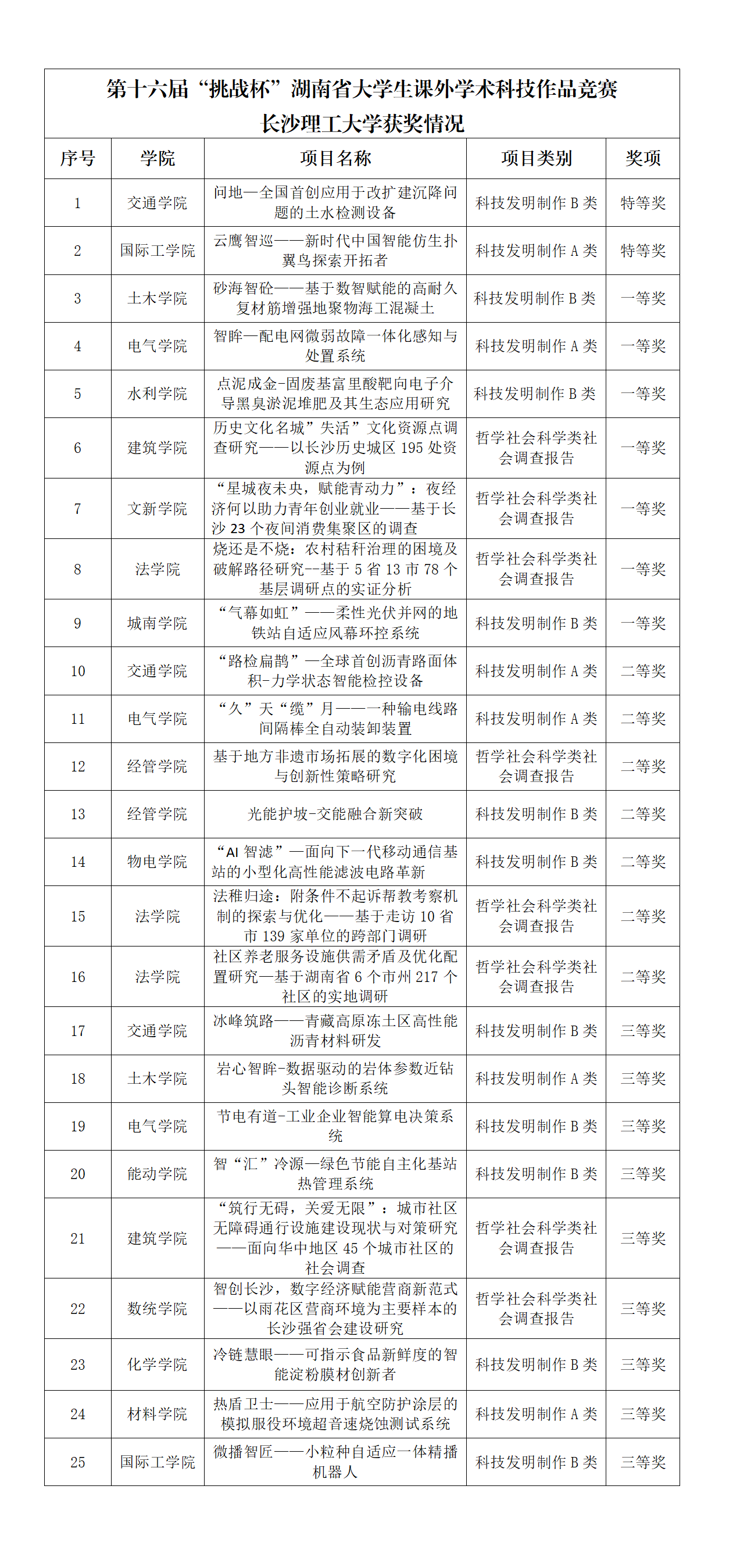 “挑战杯”竞赛作为国内最具影响力的大学生科技创新赛事之一,致力于培养学生的创新意识、实践能力和团队协作精神。本届省赛聚焦服务大学生创新创业,全省118所高校、10万余名师生参与,1149件作品入选省赛,参赛高校数量、项目数量和参赛人数三项数据创省赛历史新高。最终,MG冰球官网交通学院《问地—全国首创应用于改扩建沉降问题的土水检测设备》、国际工学院《云鹰智巡——新时代中国智能仿生扑翼鸟探索开拓者》获省赛特等奖;法学院《烧还是不烧:农村秸秆治理的困境及破解路径研究——基于5省13市78个基层调研点的实证分析》等7项作品获省赛一等奖;物电学院《“AI智滤”—面向下一代移动通信基站的小型化高性能滤波电路革新》等7项作品获省赛二等奖;数统学院《智创长沙,数字经济赋能营商新范式——以雨花区营商环境为主要样本的长沙强省会建设研究》等9项作品获省赛三等奖。