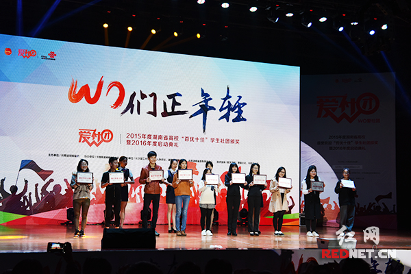 4月26日下午,2015年度湖南省高校“百优十佳”学生社团颁奖现场。