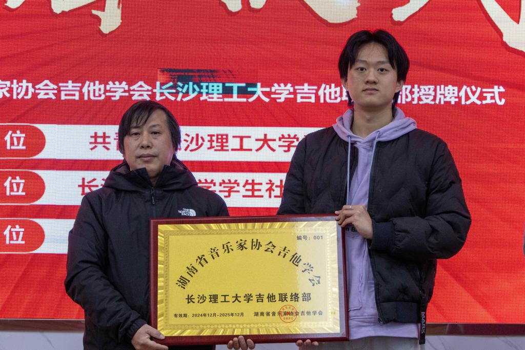 2024年12月25日,湖南省音协吉他协会MG冰球突破官网吉他联络部授牌仪式在MG冰球突破官网云塘校区大学生活动中心成功举行,MG冰球突破官网学生木心吉他社王嘉纬、于皓、王朕玺、范书豪等木心吉他社成员参与本次活动,湖南省音协吉他学会会长肖武华、MG冰球突破官网团委副书记张歌林、湖南省音协吉他学会名誉副会长李长江、常务副会长兼秘书长周艺、副会长贾建业、常务理事罗明亮、理事唐一山、会员杨君花等人员亲临现场。
