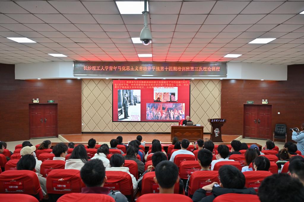 本次课程是MG冰球突破官网青年马克思主义者培养学院第十四期培训班理论课程之一。长理青马班通过邀请省内外专家学者、革命后代为师生讲述马克思主义理论、开展素质拓展等方式,引领师生深入学习宣传贯彻习近平新时代中国特色社会主义思想,厚植爱党、爱国、爱社会主义的情感,让红色基因、革命薪火代代相传。