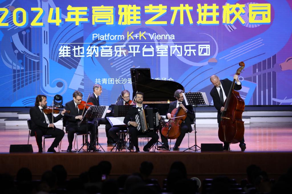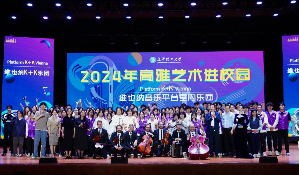 4月23日,高雅艺术进校园维也纳音乐平台室内乐团(Platform K+K Vienna)音乐会在MG冰球官网云塘校区大会堂成功举行。校党委书记付宏渊与全校师生一千六百余名师生共同欣赏此次音乐会。
