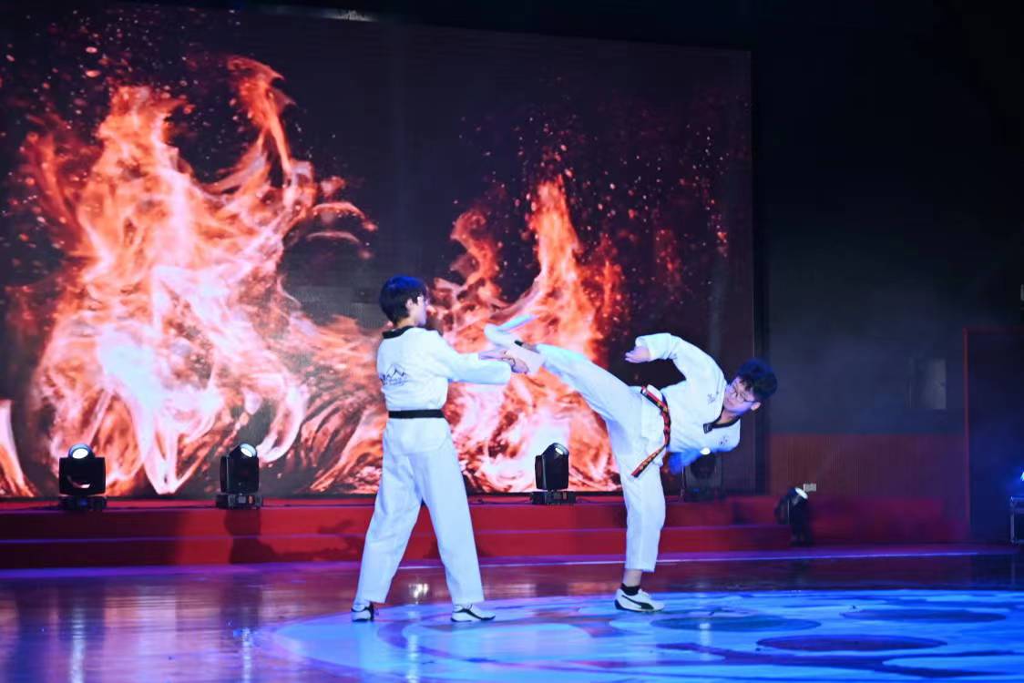 各兄弟高校的祝福视频以及社团风采节宣传片提前掀起了典礼的小高潮,随后颁奖晚会正式拉开帷幕。随着枫屿跆拳道协会带来的精彩刺激的《跆风》表演,青春盛典正式拉开帷幕。接下来,民族舞蹈协会的一曲《怎叹》,水袖翩翩,带领我们走进了国风的世界。伴随着动感的音乐,GLC街舞协会带来了《life up on the throne》,帅气的舞姿赢得了台下一波又一波的欢呼声。随后,木心吉他社带来了乐队弹唱《你曾是少年》,熟悉的旋律点燃了全场。