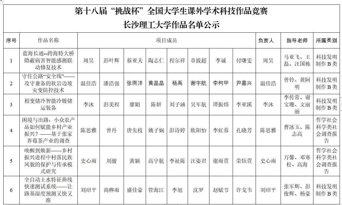 经省赛评审,按照共青团湖南省委《关于推报优秀作品参加第十八届“挑战杯”全国大学生课外学术科技作品竞赛的通知》,MG冰球官网拟有6项作品参加第十八届“挑战杯”全国大学生课外学术科技作品竞赛。