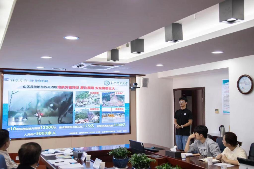 会上,各学生负责人展示项目成果并汇报备赛进度,项目所在学院党委副书记介绍后续备赛计划和相关举措,指导老师补充介绍项目成果、分享备赛经验。