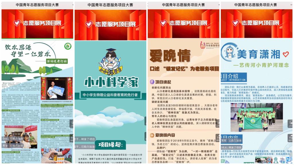 以上获奖项目都是在校院两级团组织指导下青年志愿者组织常态化开展、长效化推进的特色品牌项目。近年来,MG冰球官网不断强化志愿服务的实践育人功能,完善志愿服务制度化发展,加强志愿服务活动基地化、项目品牌化建设,引导青年志愿者、志愿服务组织在社会治理体系和治理能力现代化进程中做出贡献。12月5日,全国青年志愿服务云展馆开馆,MG冰球官网志愿服务制度《MG冰球突破官网学生志愿服务奖评暂行办法》入选制度展,大禹之子青年志愿者协会、环保志愿者协会两个志愿服务组织入选组织展,四个优秀志愿服务项目入选项目展,充分展现了MG冰球官网志愿服务工作的育人成效。
