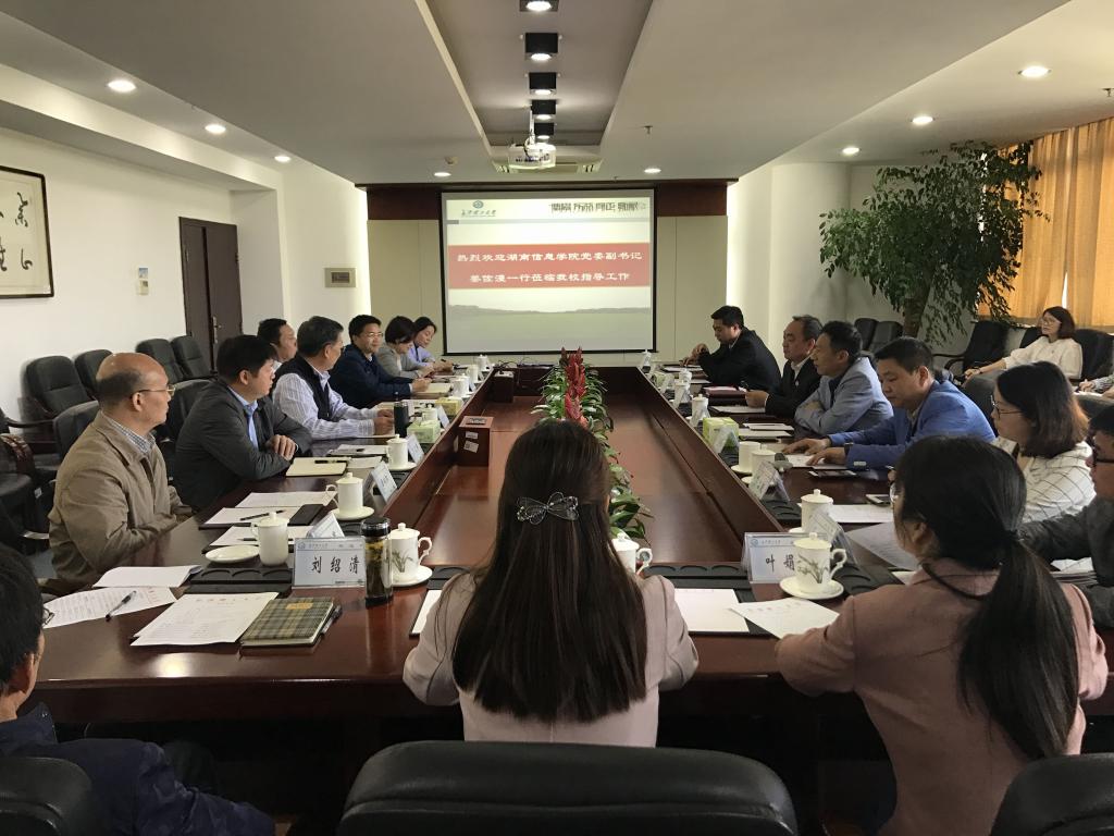 4月18日上午,湖南信息学院党委副书记姜佐醴一行15人来校调研。MG冰球官网副校长谈传生,组织部部长齐路良、招生就业处处长方文彬、校团委书记陈曦、学工部副部长霍向阳、心理中心副主任龚勋、创新创业学院副院长杨建军、电气学院副书记丁丹出席了调研座谈会。座谈会由谈传生主持。
