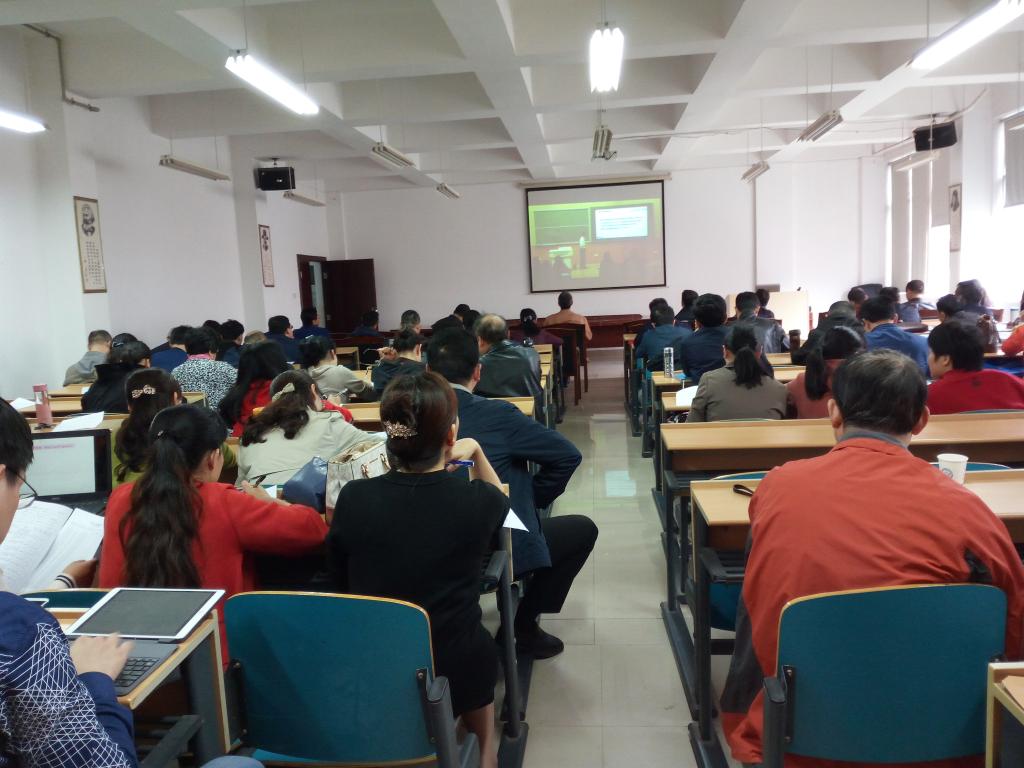 郭建鹏教授主要从事课程教学论和教育心理学研究,通过实证研究探讨学习的规律及教学方法的改进,在信息技术与教学方法进行深度融合方面有自己独到的心得。此次讲座中,他以一位普通教师的身份向MG冰球官网教师分享了自发研究、实践翻转课堂,借助“雨课堂”技术改变教学方法的过程。他细致讲解了O-PIRTAS翻转课堂教学法,即以教学内容和目标、课前准备导入、课前视频教学、课堂视频回顾、课堂知识测试、课堂活动设计、课堂总结提升七大步骤为核心环节的教学方法,助力教师转变为“以学生为中心”教学观念。他在讲座中提到“没有有效学习的课堂就是浪费时间、浪费生命”引起了在座教师的强烈共鸣。他通过展示“翻转课堂+雨课堂”与传统课堂在课堂互动、学生注意力、学习效率及学习成绩等方面的试验结果对比,示范“雨课堂”通过课堂实时在线互动,让手机从学生的“低头工具”变为学生积极参与学习的“抬头利器”,激起了老师们浓厚的学习兴趣,在讲座中引发老师们连连发问。