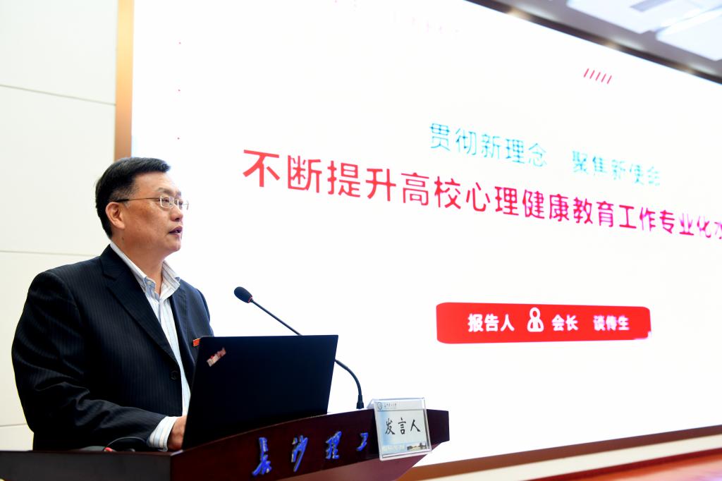 谈传生在会上作题为《贯彻新理念,聚焦新使命,不断提升高校心理健康教育工作专业化水平》的工作报告。报告指出,在过去的三年里,湖南省高校大学生心理健康教育研究会在省教育厅的正确领导下,坚持以习近平新时代中国特色社会主义思想为指导,深入贯彻党的十九大、十九届二中、三中、四中全会精神,落实全国高校思想政治工作会议精神和全国教育大会精神,凝心聚力、研究发展,夯实心理健康教育的三个基础,提升两支队伍的专业化水平,发挥桥梁纽带作用,有效提高了各会员单位的心理健康教育工作水平。下一步,研究会将顺应时代要求,认真履行研究、服务、指导、联络职能,充分调动各会员单位的主观能动性,夯实工作基础,深入推进成长辅导;强化培训督导,继续推进专职教师专业化水平;提升研究深度,充分发挥助手智囊作用,大力推动心理健康教育专业化发展,为我省大学生心理健康教育的工作水平再上新台阶贡献力量。