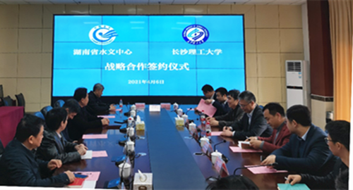 双方签订战略合作协议,并就人才培养、洞庭湖关键技术研究、水环境实验室科研合作、智慧洪水预报及共建科普基地等方面进行了详细会谈,双方一致认为要通过优势互补、资源共享,深入开展长期多元化的合作,实现合作共赢,更好地服务社会。