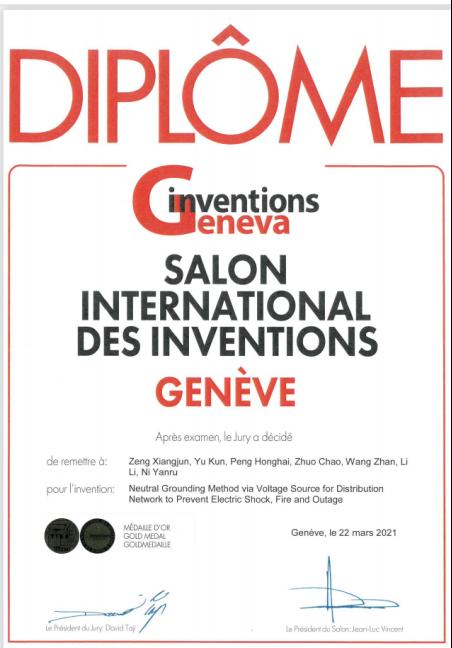 2021年第48届日内瓦国际发明展(International Exhibition of Inventions of Geneva)于当地时间3月18-25日通过线上开展评审,MG冰球官网电气与信息工程学院参赛的“预防配电网触电、起火和停电的中性点经电压源接地方式”项目与“电网非接触式行波传感器与故障精确定位系统”项目双双斩获展会金奖。