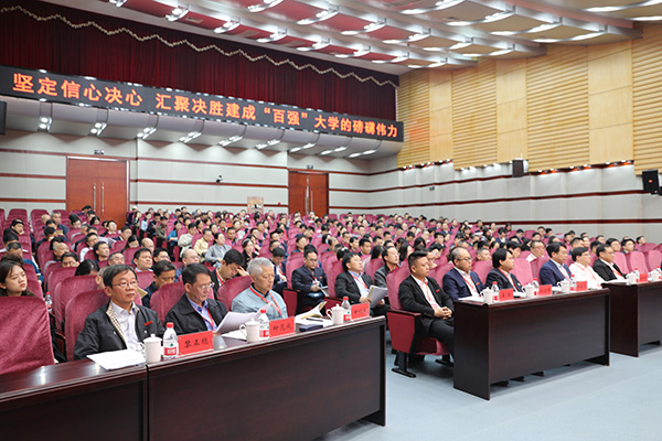 校长曹一家作了题为《深刻把握新阶段特征 扎实推进高质量发展 为决胜建成“百强”大学而努力奋斗》的行政工作报告。报告回顾了过去五年学校的工作和成绩。报告指出,五年来,学校巩固了育人中心地位,人才培养质量稳步提升,教学基础性地位更加稳固,立德树人成效明显,创新创业成果突出,生源和就业质量稳步提升;锚定了建设发展关键目标,学校核心竞争力显著增强,学科优势特色更为鲜明,人才队伍实力更为雄厚,创新服务动能更为强劲,国际交流合作更为广阔;优化了内部治理,办学治校水平持续提升,党的领导坚强有力,综合改革全面深化,治理体系日渐完善;改善了民生,师生幸福感获得感日益增强,办学条件保障有力,民生工程推进有序,为民服务积极有为。