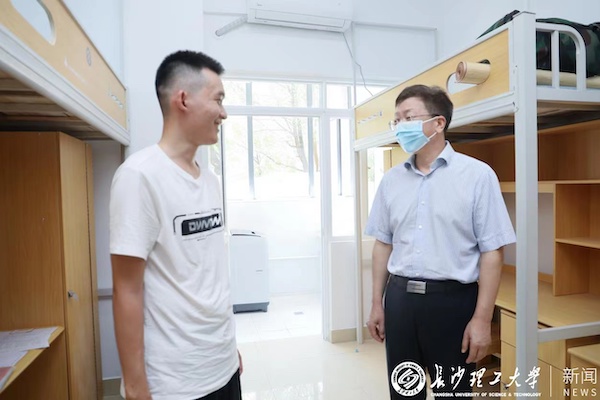 在云塘校区,付宏渊一行检查了现场迎新、志愿服务等有关工作,并深入学生宿舍楼栋检查了生活设施等情况。在敏行轩2栋,付宏渊亲切看望了来校报到的新生,详细询问了今年考入食品学院生物类2203班的新生、来自云南普洱的陈柏臣到校后的情况,勉励同学们主动转换角色,尽快适应大学生活,珍惜学校为大家提供的良好学习生活环境,发愤图强,成才报国。