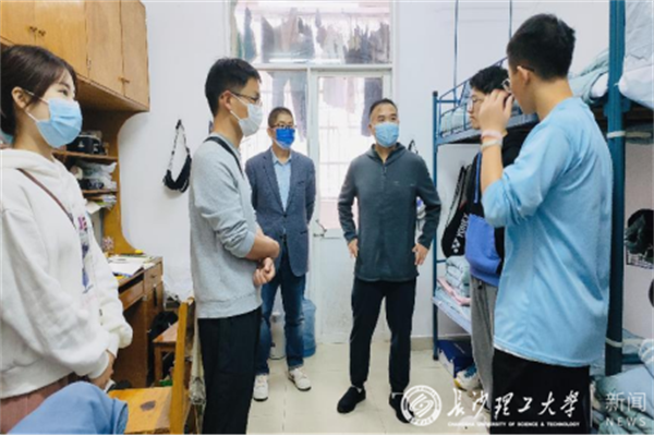 “同学们最近找工作怎么样?”“考研复习进度怎么样?”外国语学院党委书记文丽丽、院长段胜峰等与学生们进行亲切交流,关心毕业年级学生的求职情况、考研复习情况,并给予支持建议。在金盆岭校区西苑和南苑的研究生宿舍中,经管学院副院长彭新宇等仔细地询问了研究生的学习和生活情况,耐心地解答了新生们提出的问题。“这本书很好,研究生要把心静下来,看看文献、看看书”马克思主义学院党委书记陈万球、院长张明海等来到至诚轩3栋学生宿舍,细致了解了研究生新生的学习状态,给出学业上的指导和生活上的鼓励。