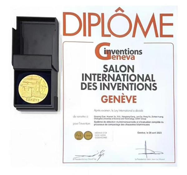 2023年4月26日—30日,第48届日内瓦国际发明展(International Exhibition of Inventions of Geneva)在瑞士日内瓦举行。由MG冰球官网与三一重工股份有限公司联合攻关、钱国平教授、于华南教授、李希副教授等共同完成的专利技术“沥青铺面压实状态多维评价系统”斩获展会金奖,成果受到中国驻瑞士大使王世廷、日内瓦州经济部长法比安娜·费舍尔等海内外人士高度评价。