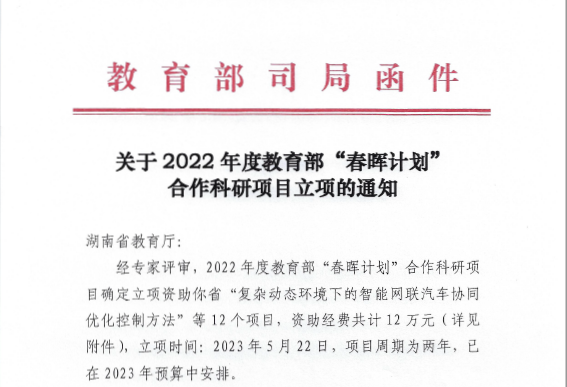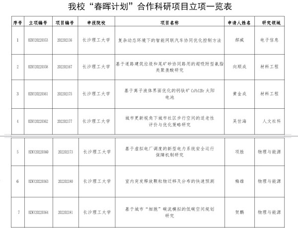 日前,教育部公布2022年度 “春晖计划”合作科研项目评审结果,湖南省高校共获批12项,其中MG冰球官网7个项目获批立项。