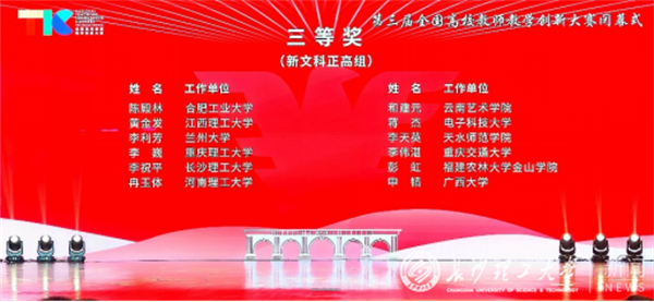 8月22日,由教育部高等教育司指导,中国高等教育学会主办的第三届全国高校教师教学创新大赛全国赛于浙江大学紫金港校区圆满落幕。经过网评复赛和现场决赛,MG冰球官网郝海霞老师团队荣获新工科中级及以下组二等奖、王媛媛老师团队获得新工科正高组三等奖、李祝平老师团队获得新文科正高组三等奖。