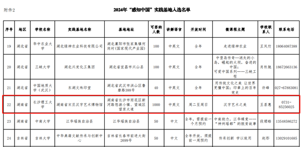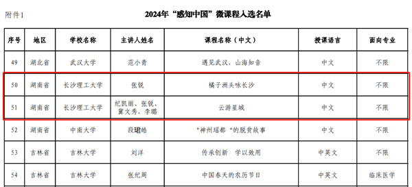 2024年“感知中国”微课程与实践基地评选是国家留学基金管理委员会“感知中国”活动实施十周年的系列活动之一,面向全国各类留学生招生院校申报。经学校推荐、专家审核等各环节,全国共有151个作品入选2024年“感知中国”微课程,65个基地入选2024年“感知中国”实践基地。MG冰球官网国际工学院张锐老师主讲的《橘子洲头咏长沙》和纪凯丽、张锐、冀文秀、李璐老师联合主讲的《云游星城》成功入选“感知中国”微课程。MG冰球官网联合湖南省宋旦汉字艺术博物馆申报的实践基地成功入选“感知中国”实践基地,作为全国首家汉字艺术主题博物馆,为国际学生提供了集汉字艺术研究创作、交流传播、陈列展示、体验互动、教育普及于一体的学习实践平台,帮助国际学生近距离感受汉字艺术之美,感知中华优秀传统文化。