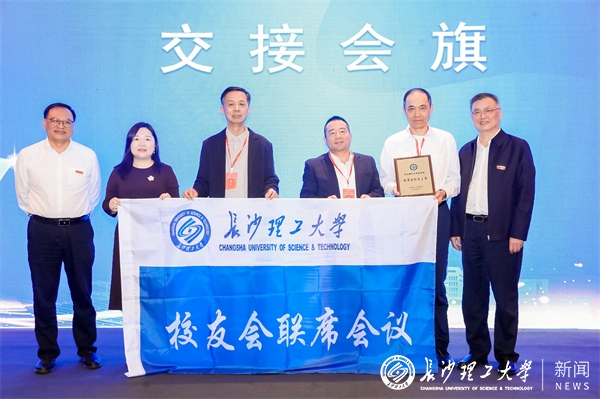 会旗交接仪式上,谈传生为下一届联席会议承办单位上海校友会颁发了会旗、会牌。