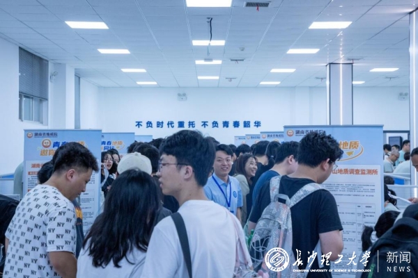 宣讲推介会后学校组织了专场双选会,湖南省地质院率院属15家事业单位集体亮相,带来230个优质岗位,专业覆盖地质勘查、工程测绘、岩土工程等核心领域。活动现场人气火爆,近500名毕业生带着简历,穿梭于各单位展位前,就岗位内容、招聘要求、硕博引进政策等问题与招聘负责人展开深入交流。
