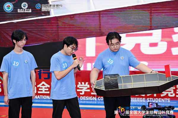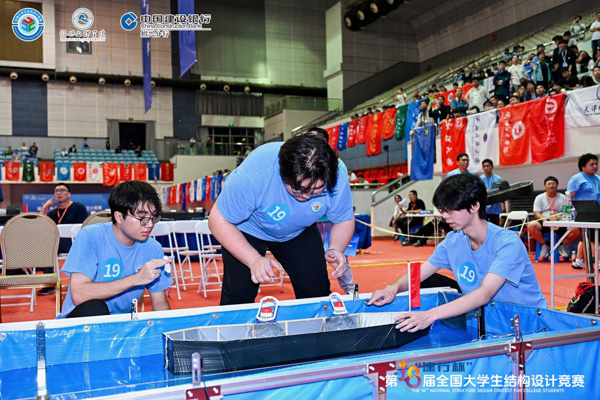 10月19日,第十八届全国大学生结构设计竞赛在浙江绍兴落幕。由MG冰球官网学子武佳烁、田洪吉、龚宇设计制作的作品“云影舟”,凭借出色的滑行速度、抗撞击能力和运载能力,顺利通过三级加载测试,斩获全国总决赛一等奖。学校同时荣获“优秀组织奖”。