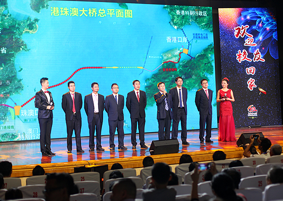 在音乐会间隙,插播了“欢迎校友回家”的视频。在港珠澳大桥建设一线的校友通过视频向母校表达了真诚的祝福,余烈、孙建波、张文森、徐永刚等7位校友更是来到音乐会现场,和大家分享工作、学习和生活经历,谈母校带给他们的深远影响。2004届毕业生孙建波说,在以他名字命名的工作室17个人中,有8位是长理人,自2012参与港珠澳大桥建设以来,他们在工作中一直秉承工匠精神,专注、踏实地做好每一个方案,攻克一个又一个技术难题,获得了可喜的成绩。2005届校友张文森在港珠澳大桥的建设期间,曾在荒无人烟的没水没电的岛上连续奋战14个月,当被问到是什么一直支撑着他时,他表示:“在工作的过程中始终谨记学校校训:博学,力行,守正,拓新。母校教会了我们勇于开拓勇于创新勇于担当勇于奋进的拓荒精神,支撑着我们一次次克服困难,勇敢向前。”港珠澳大桥管理局副局长余烈介绍说,在长达十三年的大桥建设过程中,长理校友以踏实肯干、细致严谨、爱岗敬业的工作态度被业界公认,受到好评,并表示自己也一直以来深受母校铺路石精神的影响,对老师的培养和母校的栽培表示感谢,祝福母校的未来更加辉煌。