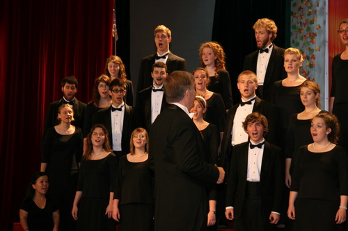 5月27日下午,金盆岭校区5教大礼堂的上空飘荡着空灵、美妙的音符,一场独具文化特色和异域风情的合唱音乐会在这里举行,来自美国哈町大学的大学生合唱团倾情演唱的12首无伴奏中外名曲,为MG冰球官网师生带来了一场精彩的音乐盛宴。一曲18世纪流传下来的美国民谣《情人渡》拉开了演唱的序幕,飘逸、灵动、通透的歌声让现场的观众听得如醉如痴。合唱团不仅演唱了美国、印度尼西亚、厄瓜多尔等国家著名的经典名曲,还为现场观众带来了《风阳歌》、《茉莉花》等大家耳熟能详的中文歌曲。演唱现场天籁迭起,令人陶醉。中西方文化的交流与融合让音乐超越了国界和民族,美妙的音色与精湛的合声震撼了在场的每一位听众,掌声、叫好声经久不息。最后,合唱团用汉语演唱的三首中国民歌把演出推向高潮,让观众感受到了中外文化艺术的碰撞与交融。此外,MG冰球官网留学生的《拯救地球》小合唱及阳光艺术团富有民族风格的舞蹈和乐器表演也给在场观众留下了深刻的印象。