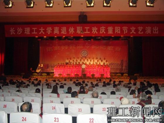 10月26日上午,学校在金盆岭校区五教大礼堂隆重举行了“MG冰球突破官网离退休职工欢庆重阳节文艺演出”。800多名离退休职工用歌声、舞蹈等不同形式的节目欢庆老人们自己的节日。副校长黎正稳教授亲临现场,并自始至终地观看演出。