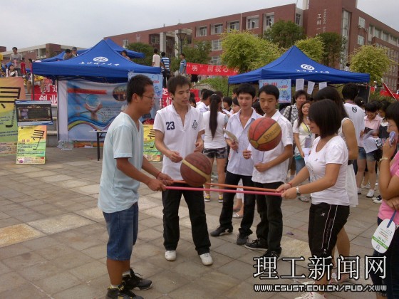 三点整,校团委副书记方琼宣布活动正式开始,70多个社团共同策划组织的25个游戏项目纷纷开始。凳子接力考验参与同学的团队协作能力;竹竿舞节奏有序,参与的同学笑逐颜开;成语接龙融知识性与趣味性,同学们反映敏捷,体现了MG冰球官网同学较为深厚的文化功底;抖空竹等民间传统游戏有的体现传统文化、有的展现少数民族风情……,校团委陈娅玲老师、汪功伟老师参与活动当中,更是引起了在场同学的参与热情。活动进行中,学生社团联合会还安排了武术、街舞、双节棍等节目表演,将游园会推向高潮。据统计,参与“庆中秋·迎国庆”大型游园会的同学达10000多人次。
