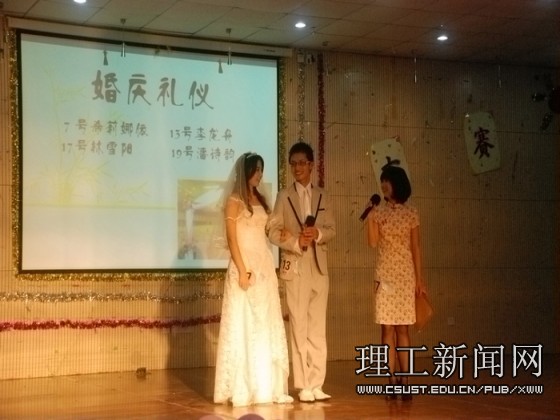 20位选手分五组分别为观众展示了餐桌上、婚庆时、招聘时、会议接待及商务上的礼仪规范。最引人注目的要数个人才艺展示的环节,选手们各显神通,纷纷拿出自己的绝活,向评委及观众证明自己的实力。玩转乐器,二胡独奏《良宵》将人引入一个深沉而宁静的夜晚,清脆的钢琴声时而轻快时而悠扬,架子鼓与吉他和小提琴的合奏让人血液都仿佛要沸腾起来。表演组,美丽的新疆姑娘身穿彩裙,轻柔的翩翩舞步,让你的心跳都加快了,竟不觉张大了嘴巴呆呆地随着她的身影游移。颇具现代气息的拉丁舞表演也让观众不时发出赞叹的声音。在舒缓的古筝声中,听幽幽的女声讲着茶道,那是一道别样的风景。声乐展示,不管是流行的《今天你要嫁给我》,还是异域的外文歌曲,选手们都可以将它们尽情演绎,甚至边弹边唱,信手拈来。整场晚会让在场的所有观众都感受着长理学子的多才多艺。