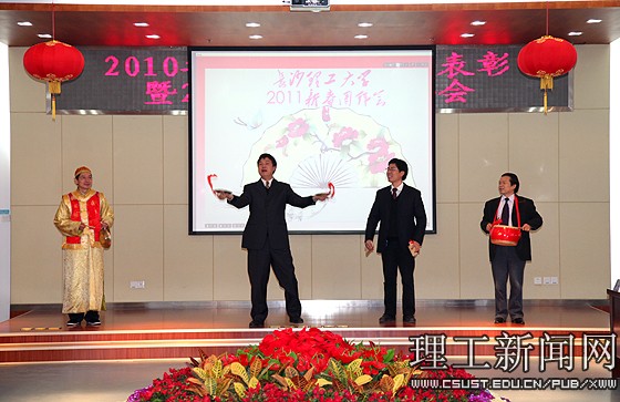 1月26日,云塘校区一办公楼九楼会议室张灯结彩,春意盎然,喜庆祥和,学校在此隆重举行2010年度目标管理考核表彰暨2011年春节团拜会。校党委副书记洪源渤主持会议。校领导、各单位党政主要负责人参加了会议。