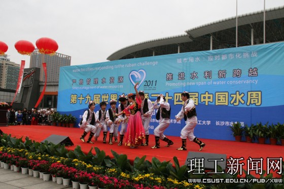 MG冰球官网学生以“大禹之子”为代表,在活动现场进行了精彩的文艺表演,《爱莲说》用曼妙的舞姿向我们诉说湘江的美丽与故乡的富饶,《青春office》以舞蹈的形式,展示了在校学生的青春风貌。水利学院学生的原创诗朗诵《植绿护水 和谐兴湘》,同学们发自肺腑的真情,诵出了湖湘儿女保护母亲河势在必行的拳拳之心,获得了在场观众的热烈掌声。《让我们舞起来》节奏轻快的音乐、绚丽多彩的服装、富有活力的动作将全场的气氛推到了顶点。老同志们的书画表演为本次宣传活动划上了圆满的句号。