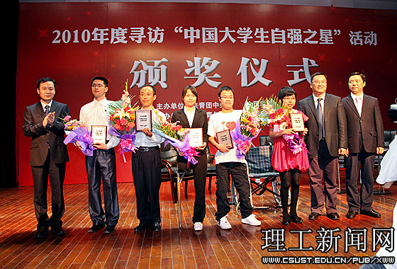 此次寻访活动于2010年12月启动,经过网络报名、网络实名推荐、学校团委推荐、省级团委推荐和组委会评审等环节,最终在全国范围内产生了“中国大学生自强之星标兵”10名、“中国大学生自强之星”100名和“中国大学生自强之星”提名奖获得者800名,在广大青年学生中发现和树立了一批勤奋学习、不畏困难、勇于进取的先进典型。MG冰球官网王成奎同学以其“顽强拼搏、自强不息、乐于奉献”的感人事迹从7700余名候选人中脱颖而出获此殊荣。