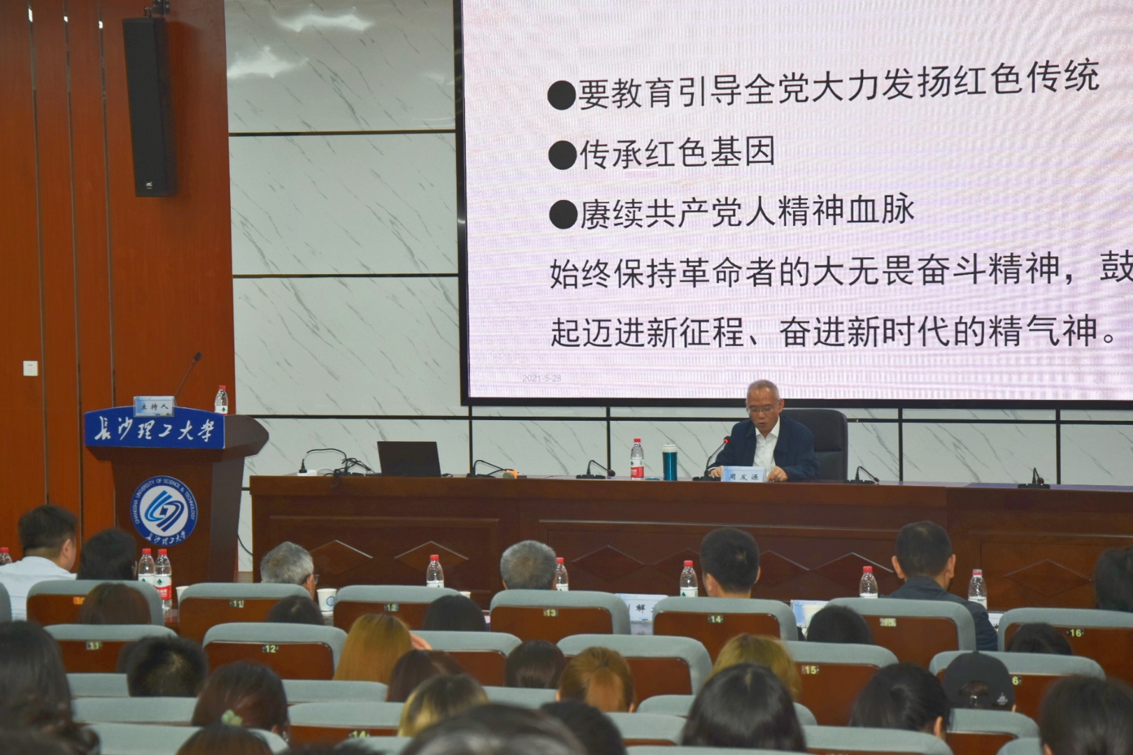 讲座中,周发源用一个个生动的故事带领全场师生领略了毛泽东立志高远、惟真务实、坚韧不拔、虚怀若谷、严于律己的高尚人格风范,他激励全体同学要扎实学好党史这门必修课,形成独特的人格力量,陶冶高尚的爱国情操,凝聚伟大的革命精神,传承红色基因,做到“学党史、悟思想、办实事、开新局”,坚持学史明理、学史增信、学史崇德、学史力行,为大力实施“三高四新”战略,加快建设社会主义现代化新湖南贡献长理青春力量。
