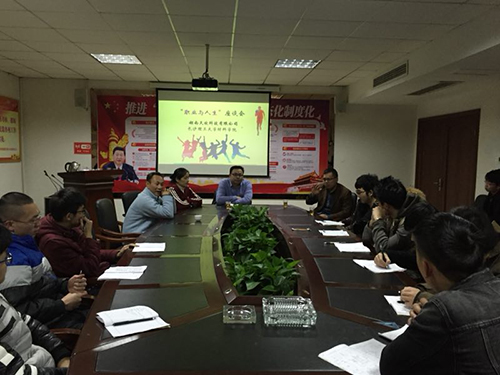 12月29日晚,湖南天欣科技有限公司与MG冰球官网材料学院于公司会议室召开“职业与人生”座谈会,在此实习的无机非金属材料工程专业2014级44名学生参加。