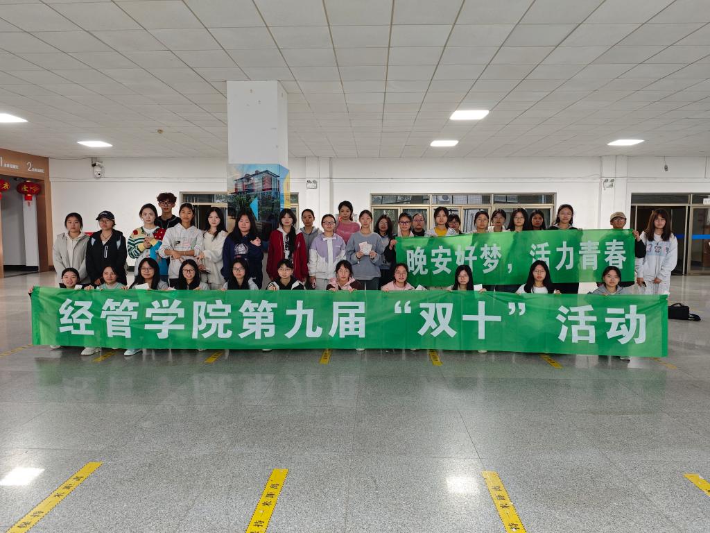 为帮助同学们了解更多心理知识,引导其更好地关注自身发展,10月19日下午,经管学院以“晚安好梦,活力青春”为主题的“双十”活动在金盆岭校区五教一楼空地举行。此次活动由院朋辈心理部组织开展,各年级同学自愿报名参加。