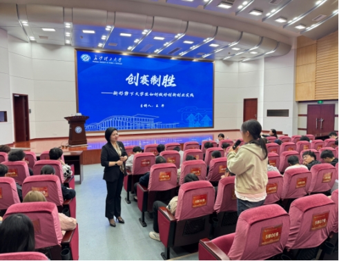 互动答疑环节,王华对同学们提出的“备赛周期如何规划”“技术转化难怎么办”等困惑逐一解答,她提出,学校要筑牢政策引导、平台支撑、项目储备“三大基石”,学生则要锚定明确市场路径、攻克核心技术、打造过硬团队“三个关键”。“创赛评审最看重落地性,不能只停留在创意层面,要拿出‘能做成的底气’和‘能做好的实力’。”她的建议让在场学子深受启发。