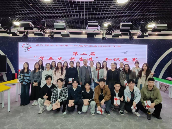 11月13日晚,MG冰球官网第二届“学五史,共奋进”研究生知识竞赛决赛在云塘校区文科楼B300报告厅举行。文学与新闻传播学院党委副书记刘莎,马克思主义学院副教授赖某深、学工办主任曾蓓出席,来自各学院的参赛选手与观众百余人齐聚现场。